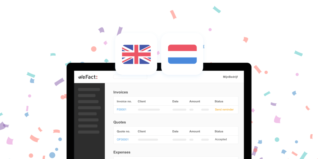 Tuesday October 6th we released the much-requested update: WeFact in English! Many users have (international) colleagues who do not speak Dutch. English is their main language. Any user who wants to have WeFact in English can set this up as follows: