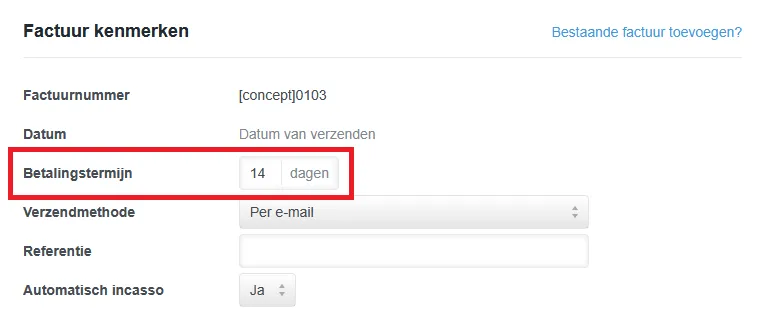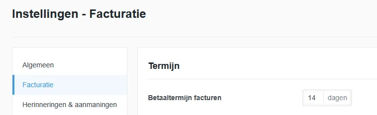 Let op: deze instelling geldt alleen voor nieuwe facturen. De betaaltermijn in bestaande (concept)facturen wordt niet automatisch aangepast.