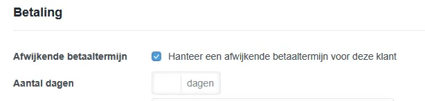 - Vink “Hanteer een afwijkende betaaltermijn voor deze klant" aan.