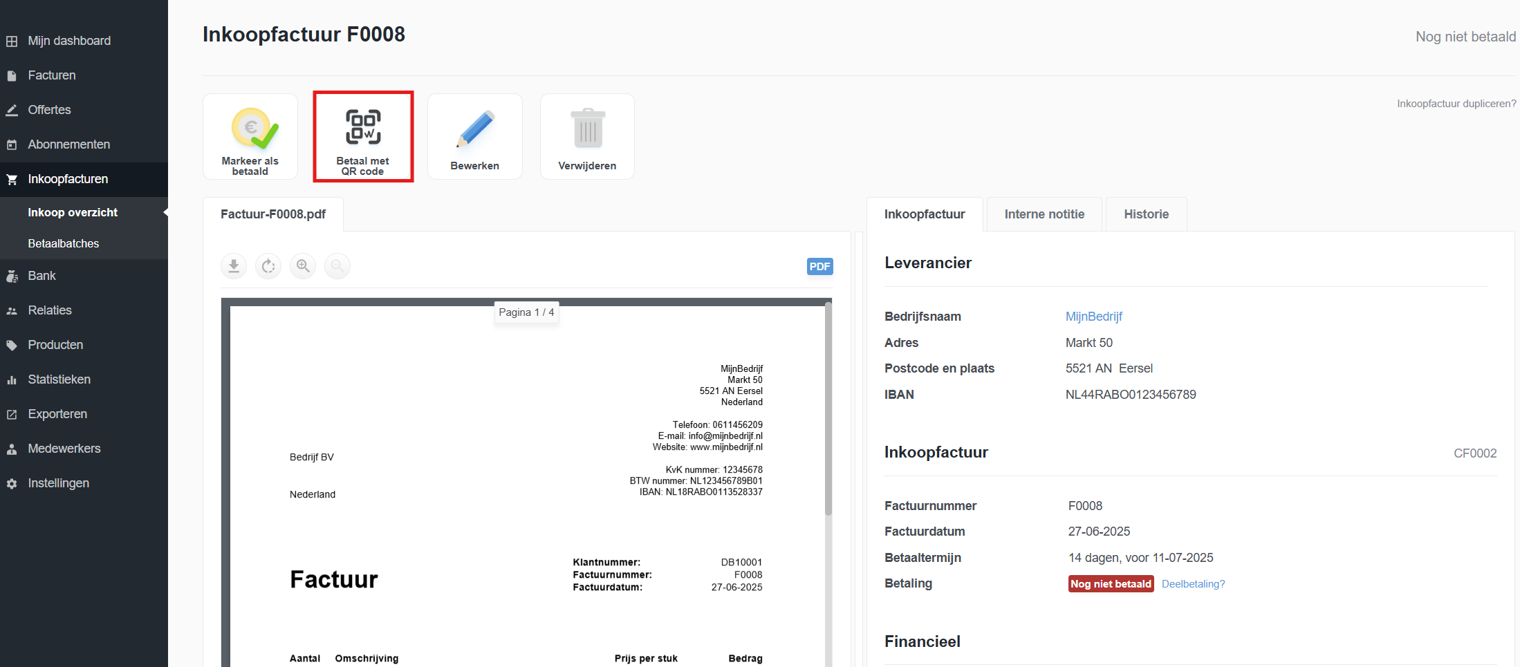 Inkoopfactuur betalen met QR-code