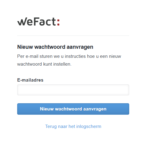 - Vul het e-mailadres in waarmee u toegang heeft tot uw administratie