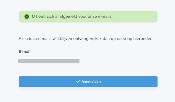 Het kan zijn dat uw klant zich heeft afgemeld voor de mailing, maar zich toch opnieuw wil aanmelden.