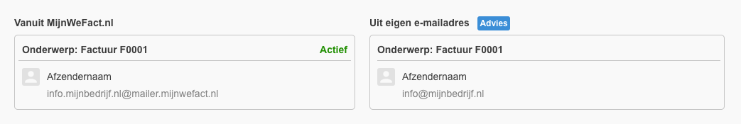 WeFact kent twee afzender methodes: